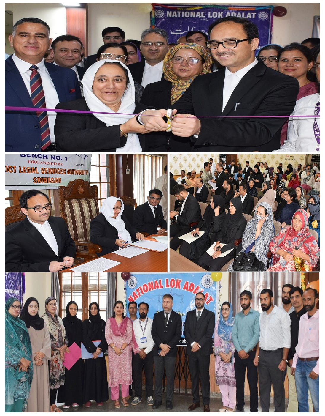 The Lok Adalat was inaugurated by Tasleem Arief, Principal District & Sessions Judge/ Chairman, DLSA Srinagar, in presence of esteemed judicial officers, members of the bar, court staff and DLSA Staff.