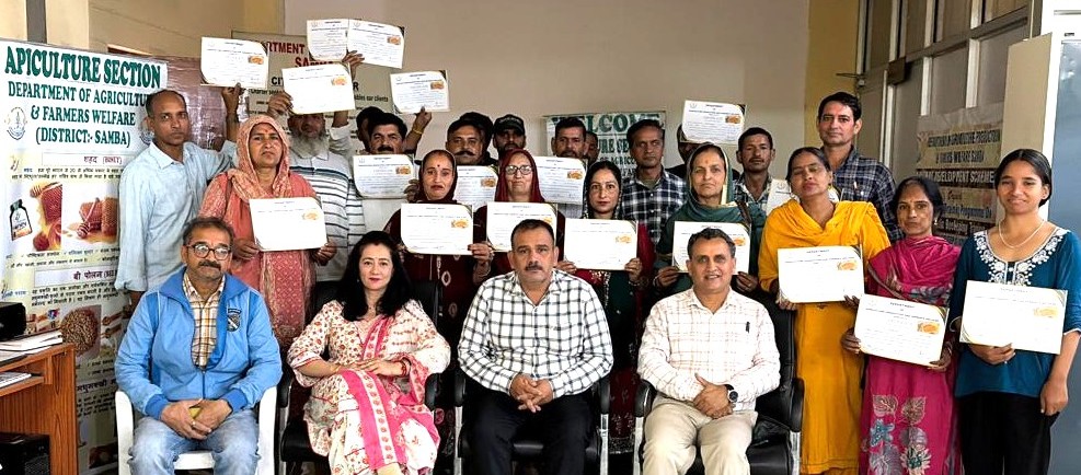 SAMBA, MARCH 24: A seven-day Scientific Beekeeping training programme, organised by District Agriculture Officer Samba, under the National Beekeeping and Honey Mission (NBHM) concluded today at Chief Agriculture office complex Samba.