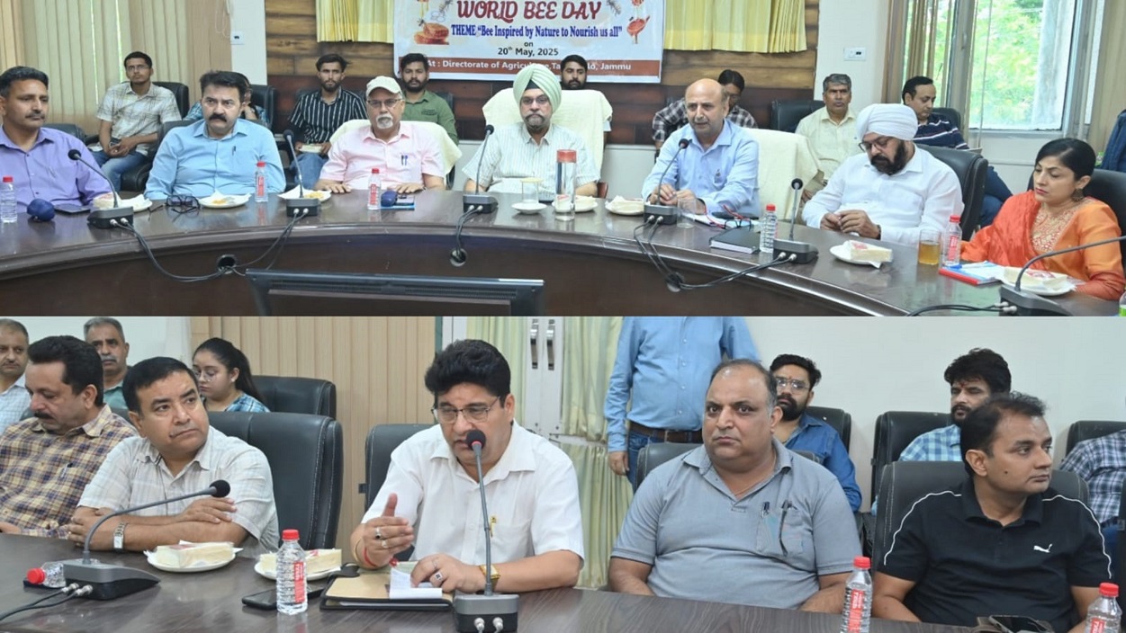 JAMMU, MAY 20: The Department of Agriculture, Jammu, today celebrated World Bee Day with great fervour and commitment across the Jammu Division. The central event was organized here at the Directorate of Agriculture, Krishi Bhawan, Talab Tillo, under the global theme “Bee inspired by nature to nourish us all.” The celebration highlighted the indispensable role of bees and other pollinators in sustaining ecosystems, enhancing biodiversity, and ensuring food security.