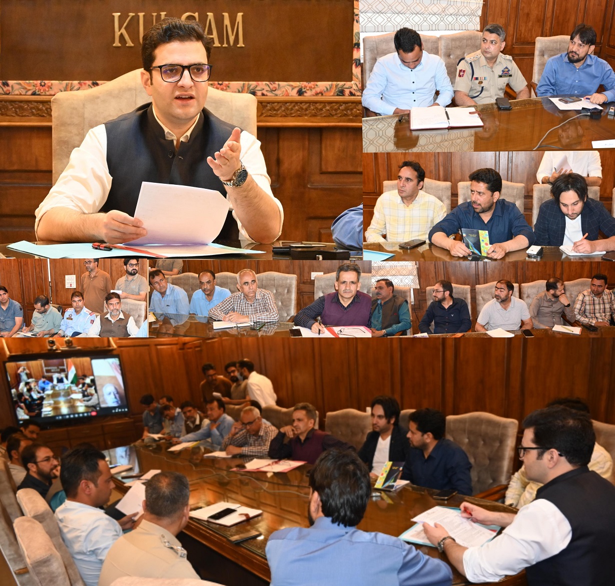 KULGAM, MAY 16: Deputy Commissioner (DC) Kulgam, Athar Aamir Khan today chaired a comprehensive meeting with officers to review and finalize the arrangements for the smooth conduct of Mela Kheer Bhawani at Manzgam and Mata Tripur Sundari, Khanbarni, Devsar.