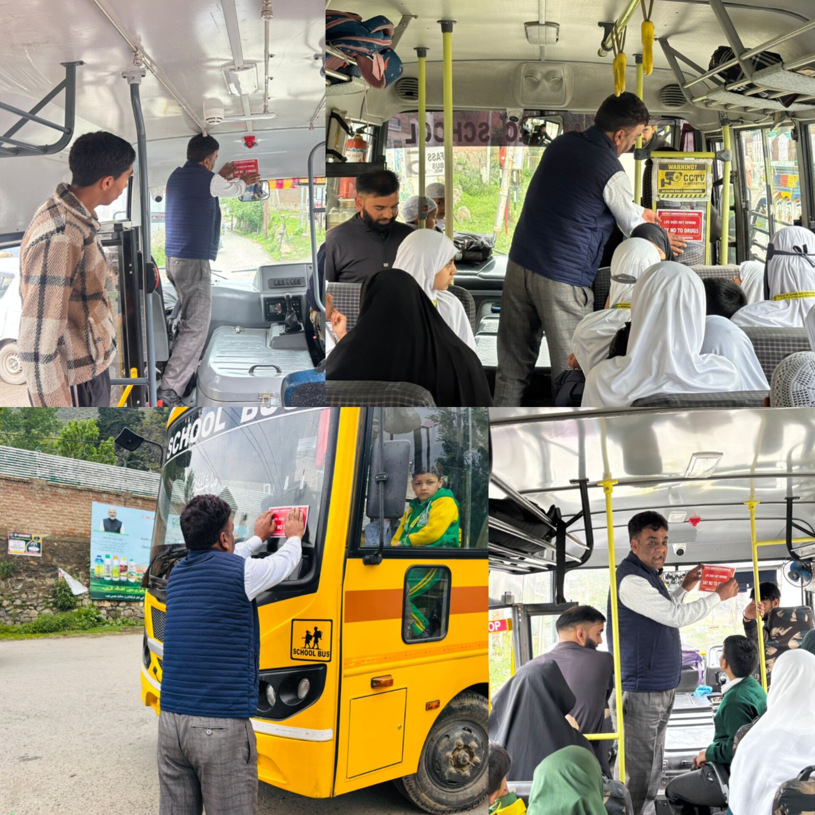 As part of the ongoing Nasha Mukt Jammu and Kashmir Abhiyan, awareness stickers carrying the message “Life Does Not Rewind, Say No To Drugs” were also pasted on the school buses.