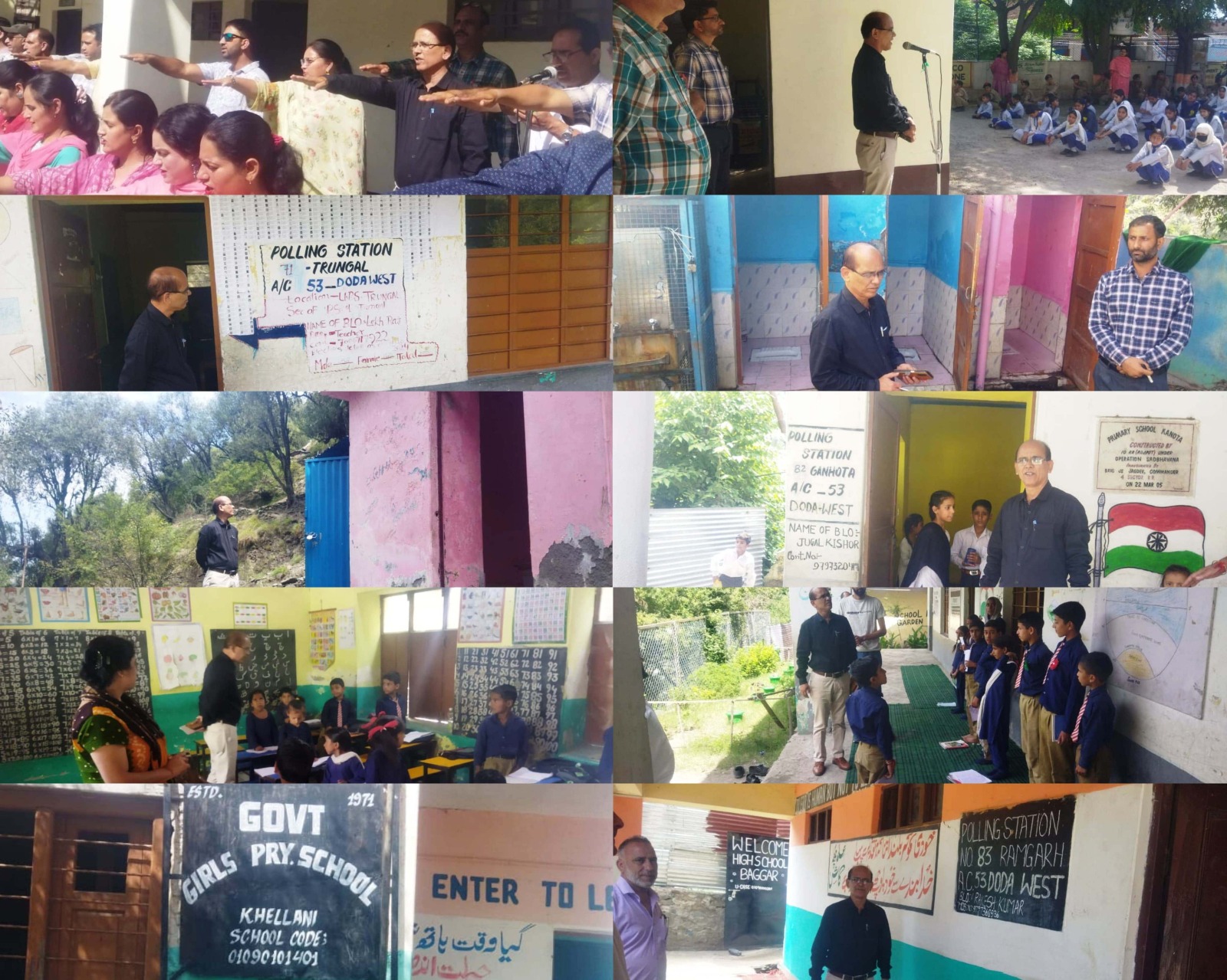 The Nodal officer visited polling stations at GHSS Khellani, GPS and GMS Malhori, GMS Trungal, GHSS Assar, GHS Baggar, GPS Ganota, and interacted with the concerned officials to ensure that all necessary arrangements were in place. The team took stock of provision of lighting, seating, and electricity supply, among other essential facilities.