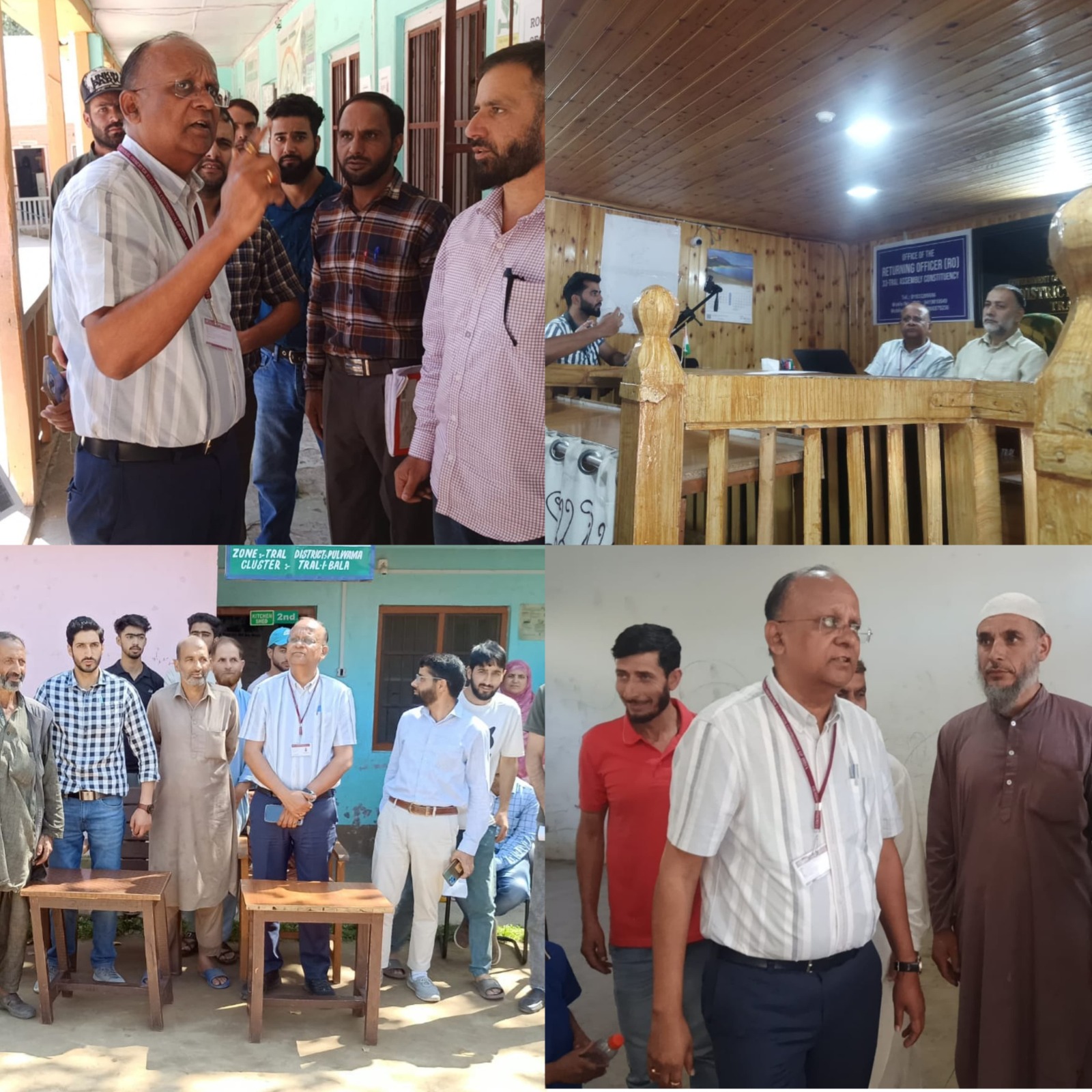 PULWAMA, SEPTEMBER 12: Continuing his field visits General Observer, Brajesh Narain Singh today visited polling stations across the Tral constituency, assessing assured Minimum Facilities and interacting with field functionaries and Voters.