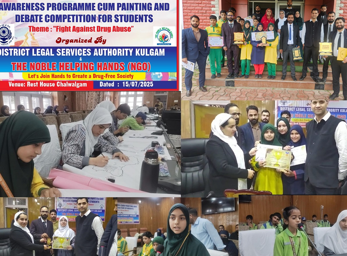 KULGAM, JULY 15: In order to educate participants on drug menace, an awareness programme cum debate and painting competition on drug abuse was today held at Rest House Chawalgam Kulgam.