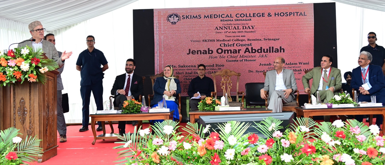 SRINAGAR, JULY 15: Chief Minister Omar Abdullah today addressed the Annual Day function of SKIMS Medical College & Hospital, Bemina, where he commended the commitment of the faculty, students and newly inducted doctors.