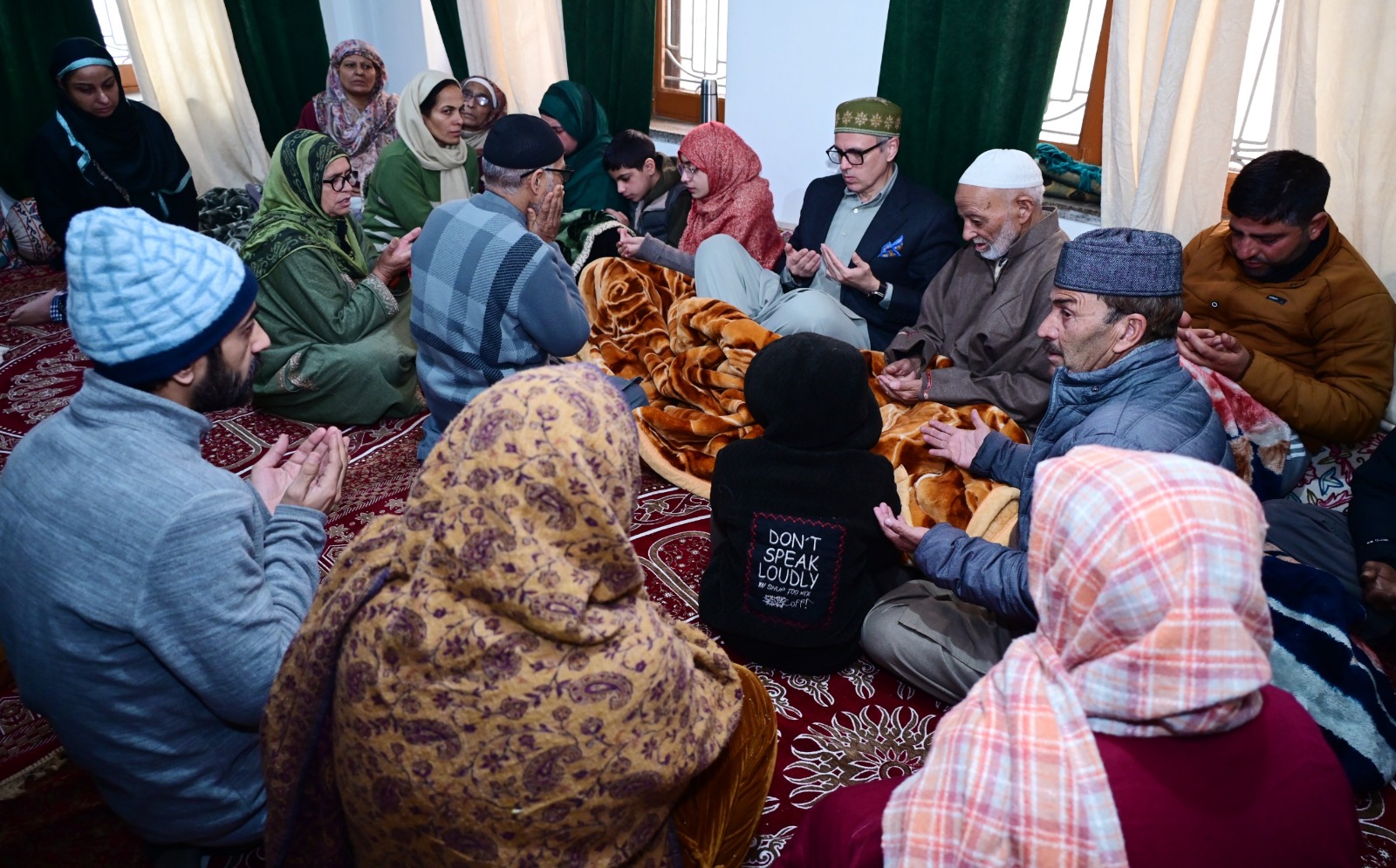 He visited the families of Late Aijaz Afzal Mir at HMT Zainakote, Late Mohammad Amin Mir at Bemina, Late Showkat Ahmad Bhat at Qamarwari, Late Suhail Ahmad Rather at Natipora, and Late Mohd. Shafi Paray at Wanabal.