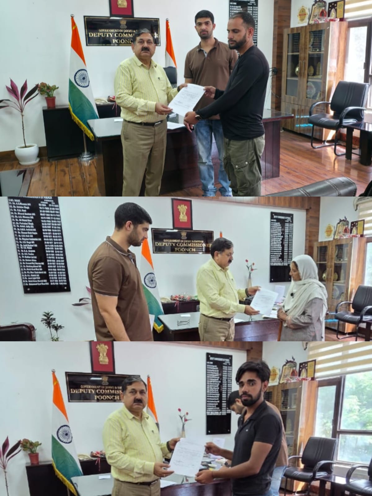POONCH, SEPTEMBER 02: Deputy Commissioner Poonch Ashok Kumar Sharma today handed over compensation sanction letters worth Rs 3 lakh to the next of kin (NoKs) of the victims of recent road accidents under the J&K Road Safety Accident Victim Fund Scheme.
