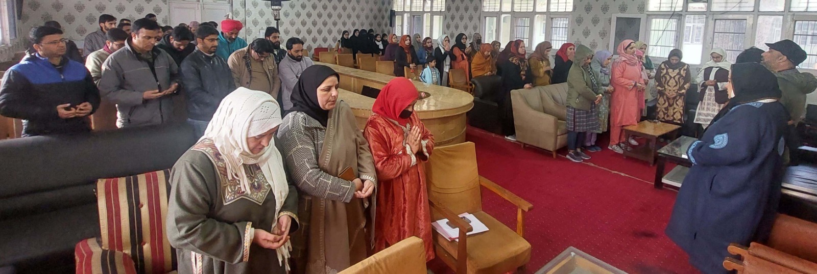A condolence meeting was held today in the conference hall of the college in which all the teaching, non-teaching staff members and students of various semesters of the college participated.