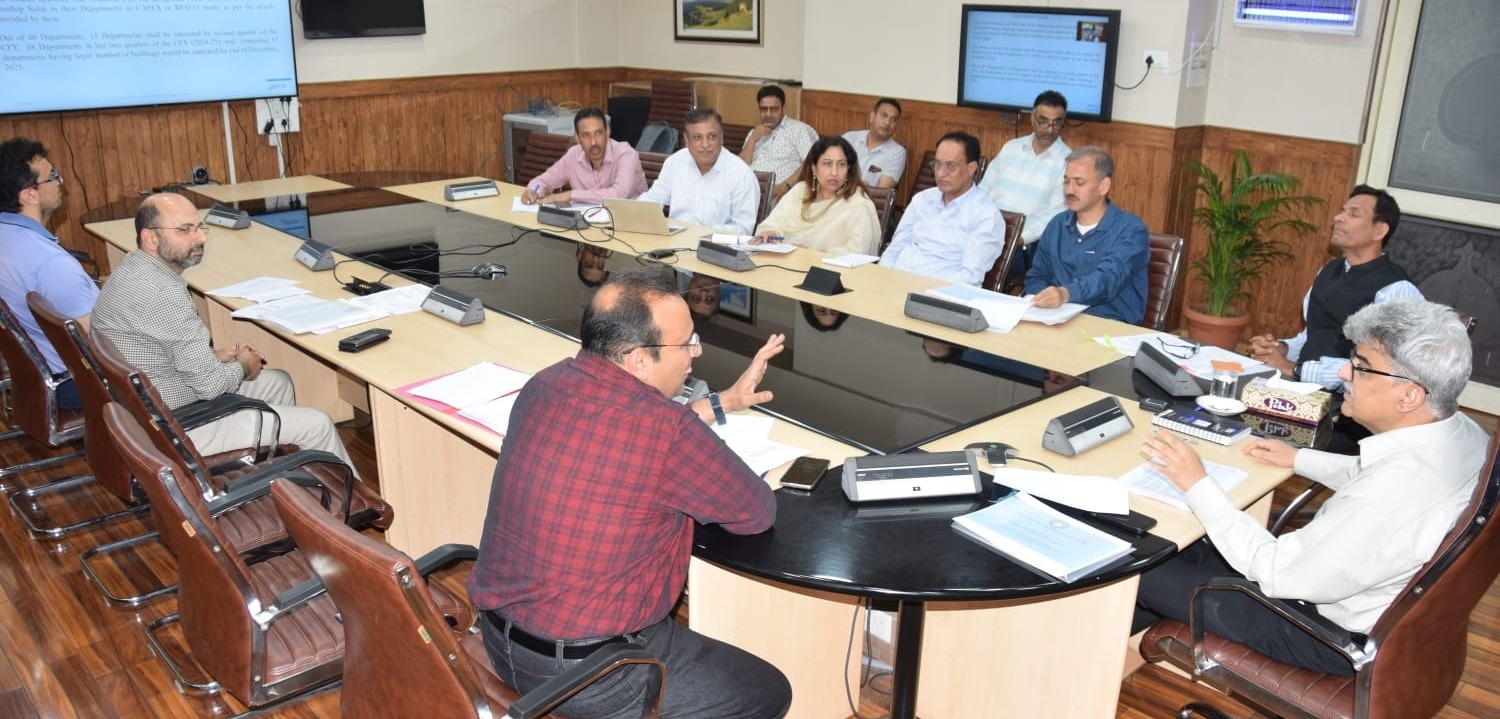 It was informed in the meeting that J&K Energy Development Agency, under Capex mode, shall be implementing 70 MW covering 8792 government buildings for which tendering process is underway. It was added that JAKEDA, under RESCO mode, is contemplating to execute 175 MW covering 7039 buildings for which tender document and PPA has been vetted by the Finance Department. Besides, it was informed that NHPC, under RESCO mode, shall be executing 63 MW of solar energy production covering 2838 buildings. It was said that NHPC has created SPV for the same. The agency is also covering all the central government buildings present in the UT.