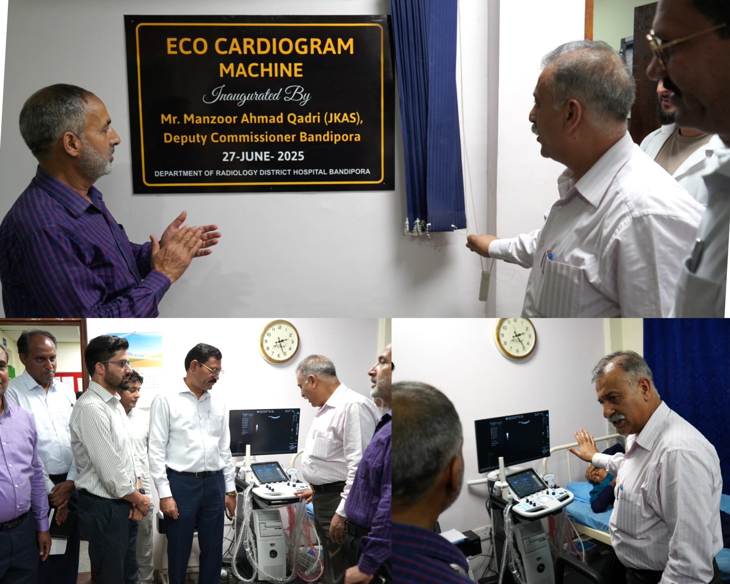 BANDIPORA, JUNE 27: In a significant boost to public healthcare services, Deputy Commissioner (DC) Bandipora, Manzoor Ahmad Qadri, on Friday inaugurated a state-of-the-art multi-use Ultrasonography (USG) machine at the District Hospital Bandipora.