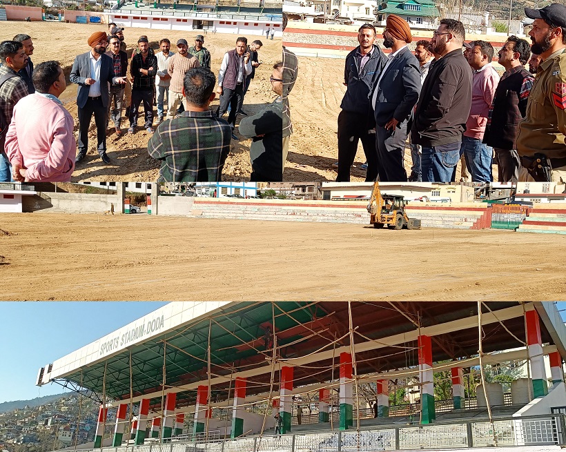 DODA, MARCH 22: The Deputy Commissioner (DC) Harvinder Singh today visited the Sports Stadium to inspect the ongoing renovation work, including greening and pitch preparation.