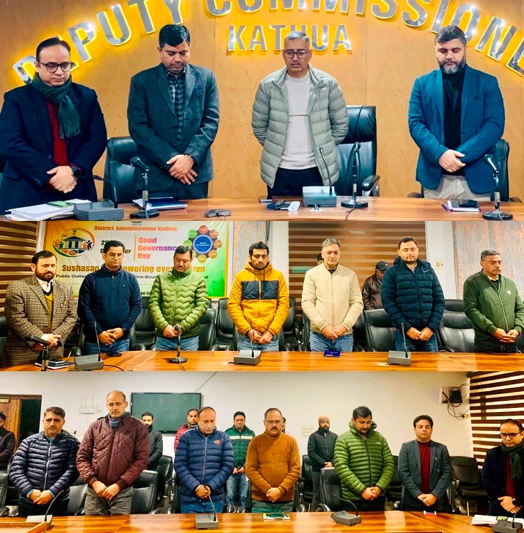 KATHUA, JANUARY 01: A condolence meeting was held today at the DC Office Complex Kathua under the chairmanship of Deputy Commissioner Rajesh Sharma to mourn the sudden demise of Deputy District Election Officer (Dy DEO) Samba Sunil Angral.