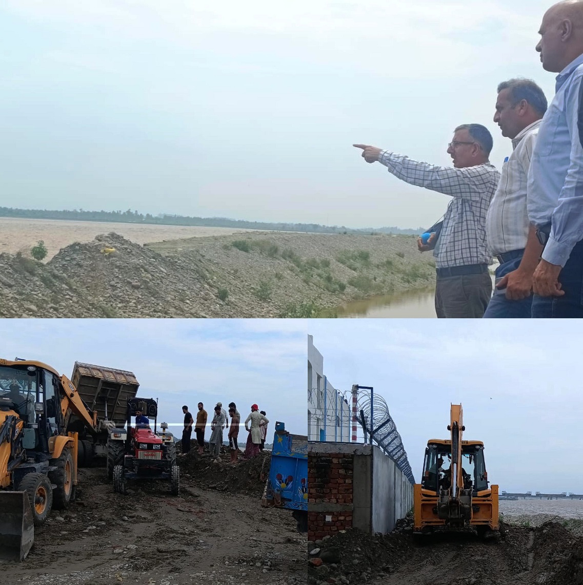 At Bhagthali Industrial Estate, the Deputy Commissioner inspected the ongoing protection work being carried out by the Flood Control authorities and directed them to take all preventive and safety measures to safeguard lives and property in vulnerable areas.