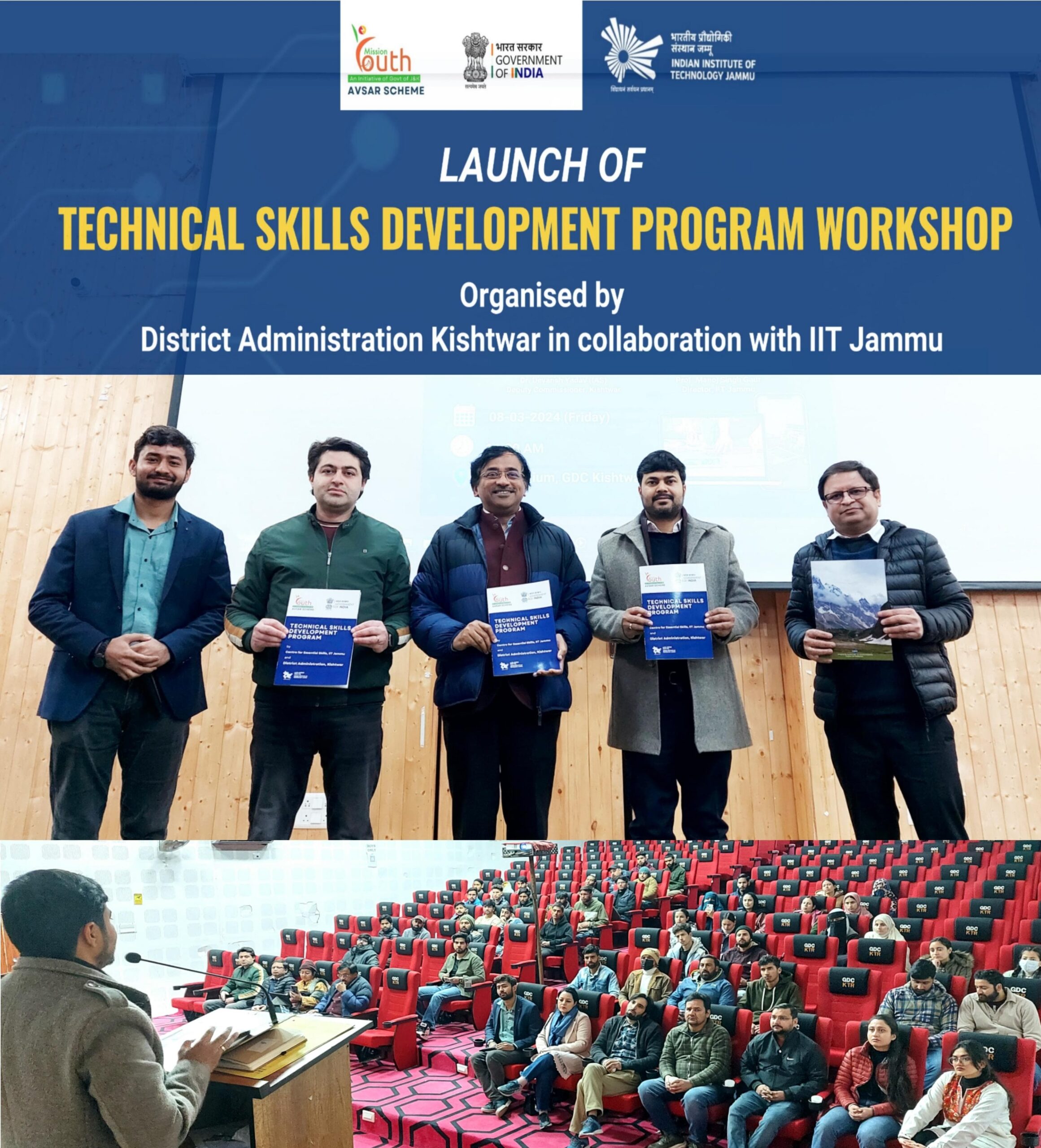 KISHTWAR, MARCH 09: Deputy Commissioner Kishtwar, Dr. Devansh Yadav, in presence of Director IIT Jammu Prof. Manoj Singh Gaur on Friday inaugurated a Technical Skill Development workshop aimed at empowering the local youth.