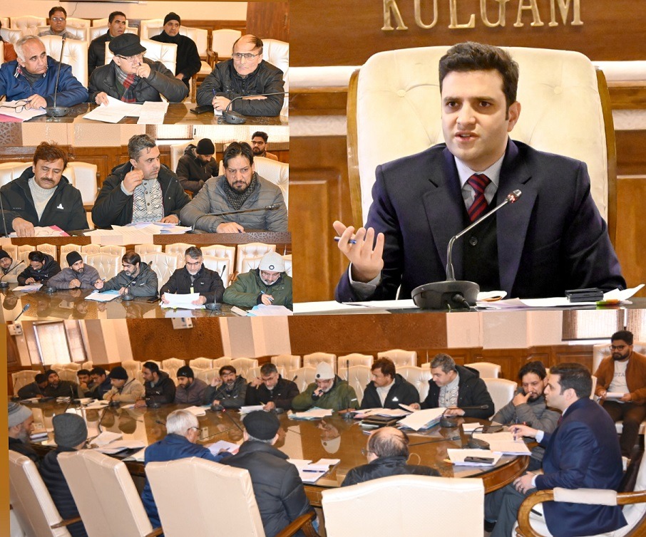 KULGAM, JANUARY 07: In order to evaluate the progress of the Jal Jeevan Mission (JJM) in the district, the Deputy Commissioner (DC) Kulgam, Athar Aamir Khan today chaired a meeting with concerned officers of the Jal Shakti Department at mini-secretariat, here.