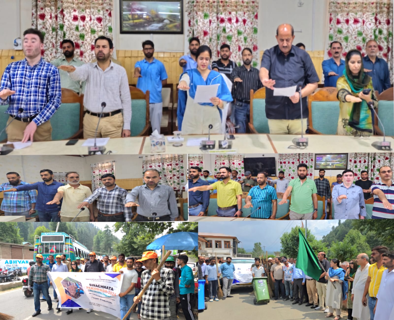 KUPWARA, AUGUST 1 Deputy Commissioner,(DC) Kupwara, Ayushi Sudan today administered Swachhta pledge to the District Officers, Sectoral officers and other stakeholders at meeting Hall of DC office complex, as part of 15-day long Swachhta Pakhwada.