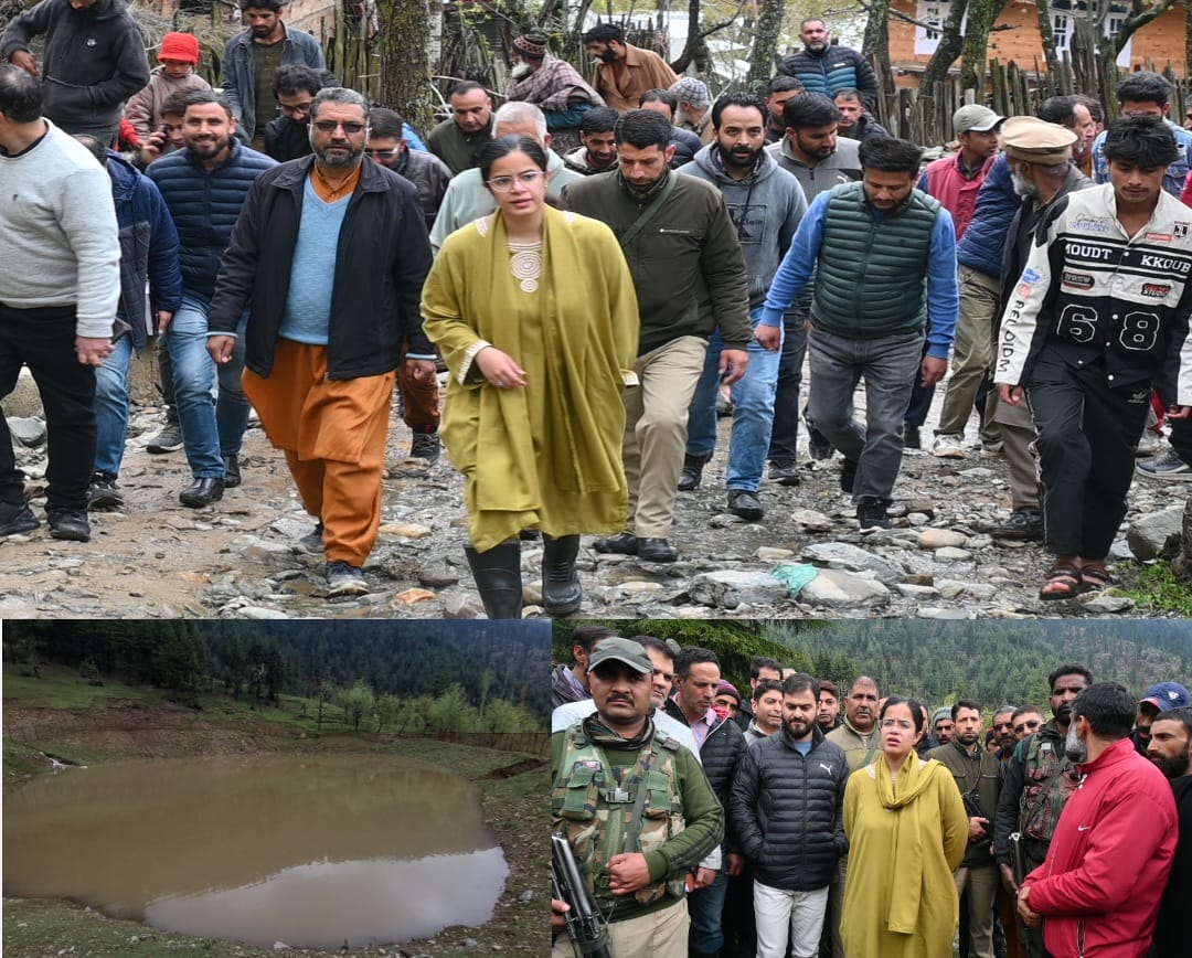 KUPWARA, APRIL 30: The Deputy Commissioner (DC) Kupwara, Ayushi Sudan on Tuesday visited flash flood hit Doban Kachama village of Kupwara district to take firsthand appraisal of the situation arisen after the breach in water reservoir, triggered by flash floods and take the on-site assessment of the flood prevention measures.