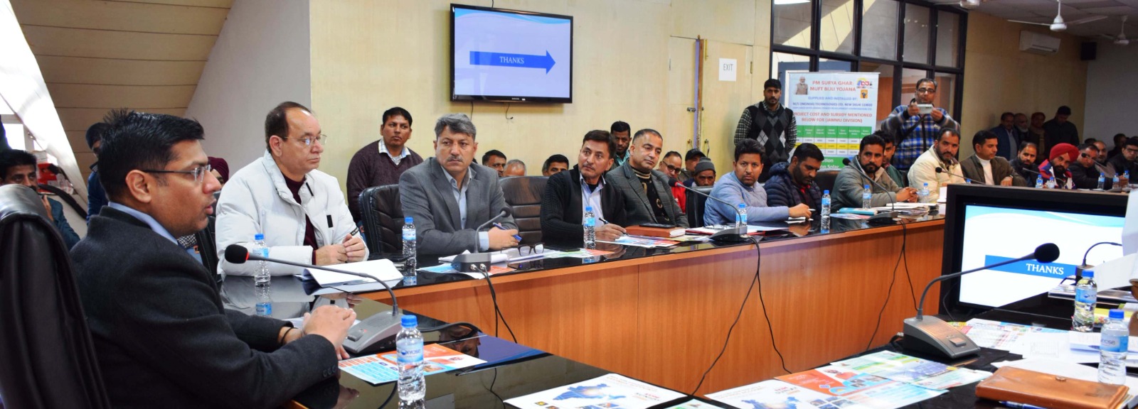 POONCH FEBRUARY 15: Deputy Commissioner (DC) Poonch, Vikas Kundal today chaired a meeting here in the Meeting Hall of DC Office complex to assess the implementation & progress of the PM Surya Ghar Muft Bijli Yojana in the district.