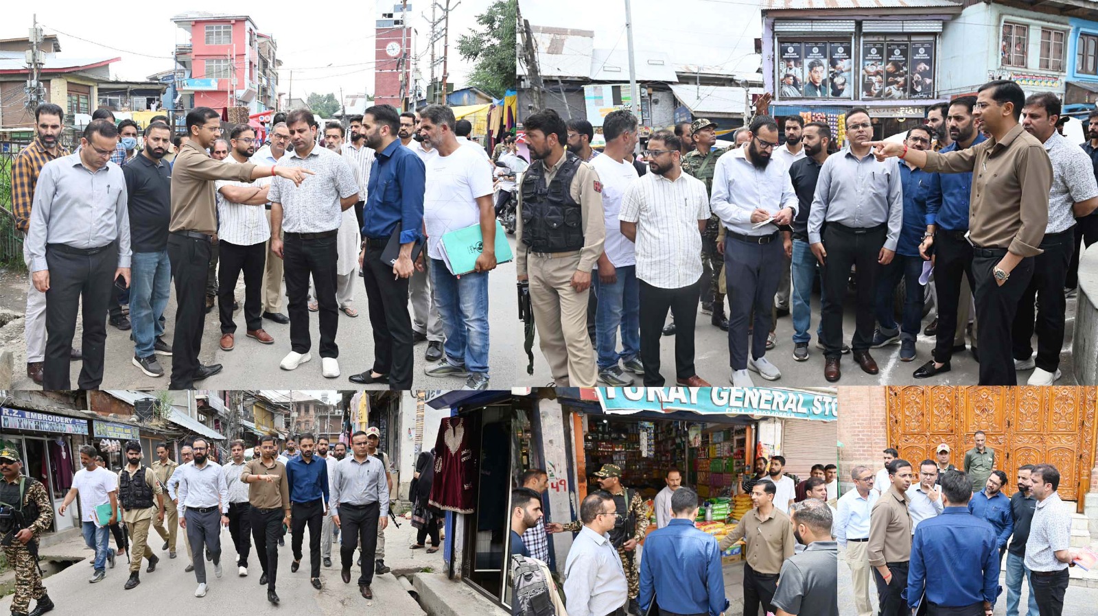 DC Shopian accompanied by ADC, Dr.Zakir Hussain Faaz, Tehsildar, CEO, MC, ARTO, CEO, DIO, Exen R&B and other officers toured high footfall areas experiencing huge traffic including Hospital Road, Clock Tower, Jamia Masjid and Zero Point.