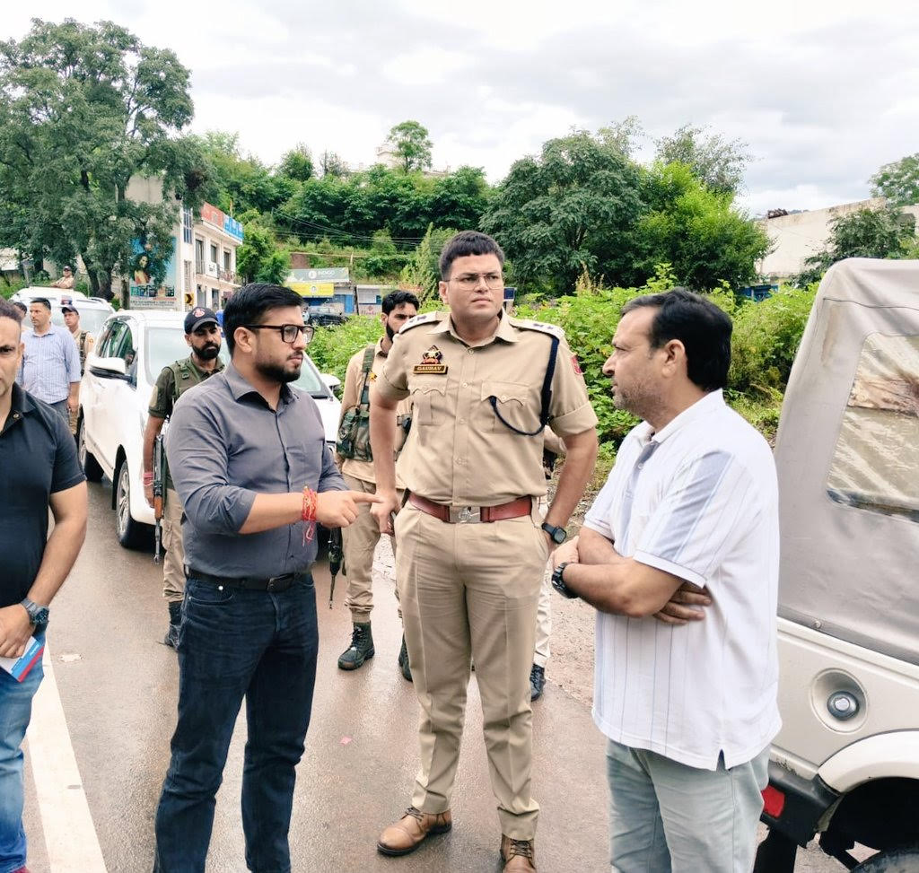 RAJOURI, SEPTEMBER 03: Deputy Commissioner Rajouri Abhishek Sharma, along with Senior Superintendent of Police Gaurav Sikarwar, today inspected the National Highway to review the situation arising due to heavy rainfall in the district.