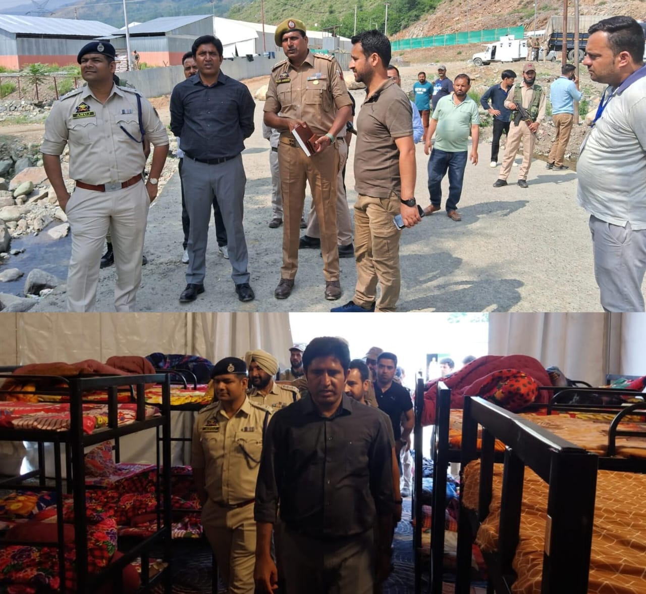 RAMBAN, JUNE 30: Deputy Commissioner Ramban, Baseer-Ul-Haq Chaudhary, along with Senior Superintendent of Police, Anuj Kumar, on Sunday conducted a comprehensive review of the security, boarding, and lodging arrangements for Shri Amarnath Yatra Pilgrims at Lamber Banihal. The visit focused on ensuring that all necessary measures are in place to guarantee the comfort and safety of the pilgrims.