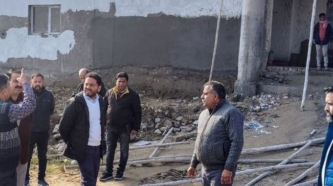 JAMMU, JANUARY 8: District Election Officer Sachin Kumar Vaishya, inspected the construction of the EVM VVPAT Warehouse at Bhagwati Nagar today.