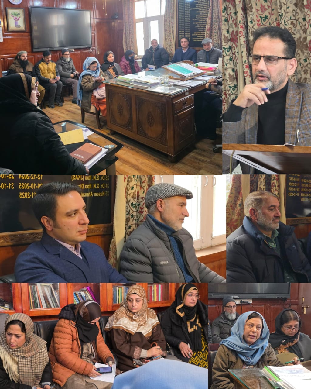SRINAGAR, DECEMBER 12: Director School Education Kashmir, Naseer Ahmad Wani today chaired an important review meeting in Srinagar to assess the overall educational status of the district.