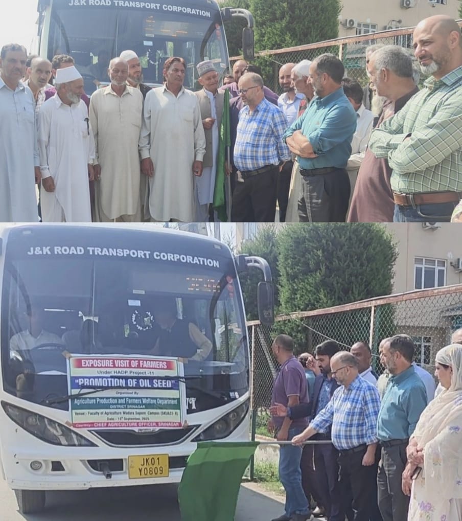 SRINAGAR, SEPTEMBER 15: A group of 45 progressive farmers from different zones of Srinagar district was today flagged-off by Director Agriculture Kashmir, Sartaj Ahmad Shah for an exposure visit to Faculty of Agriculture Wadura Sopore campus (SKUAST-K).