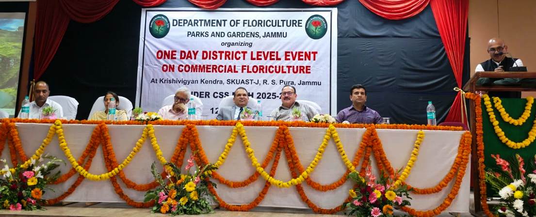 JAMMU, MARCH 12: The Department of Floriculture, Parks and Gardens, Jammu today organized a District Level Event on Commercial Floriculture at KVK R.S. Pura aimed at promoting modern floriculture practices and encouraging farmers to adopt commercial flower cultivation to increase farm income.