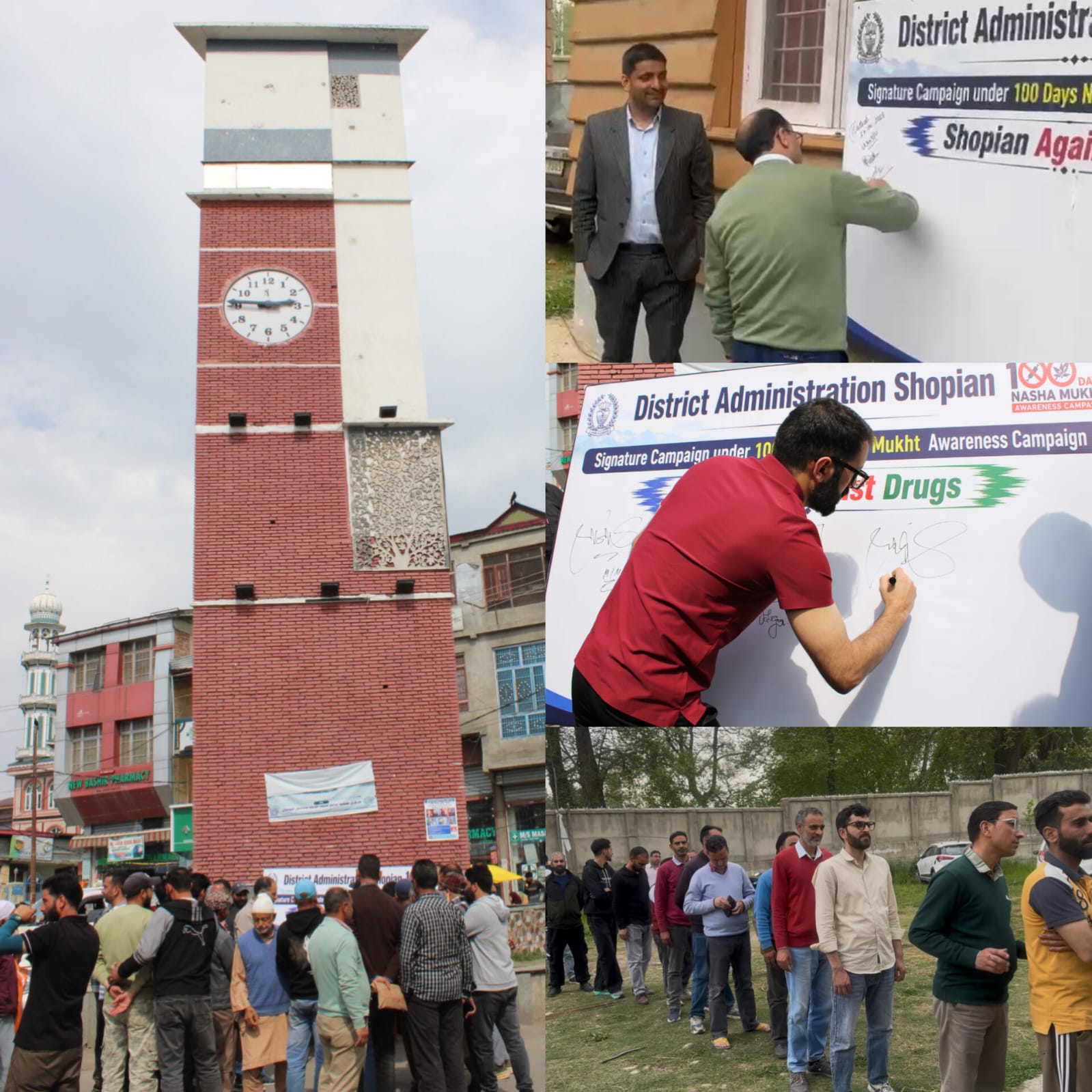 SHOPIAN, APRIL 23: In continuation of the ongoing Nasha Mukt Jammu & Kashmir Abhiyaan, large scale signature campaigns were organized at Clock Tower Shopian and multiple locations across Zainapora, aimed at raising awareness against drug abuse and mobilizing public support for a drug free society.