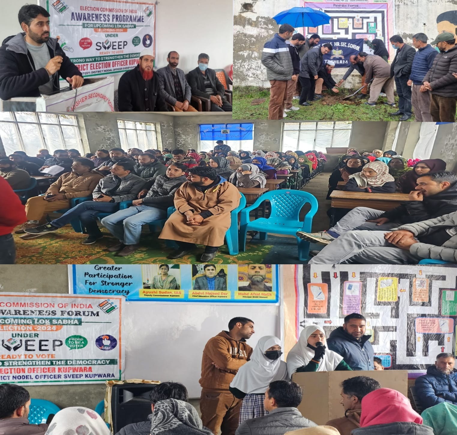 Mega Voters Awareness programs under the Systematic Voters’ Education and Electoral Participation (SVEEP) initiative were organized by Nodal Officer SVEEP/CEO Kupwara at Govt. Higher Secondary School (GHSS) Warsun, GHSS Trehgam and GHSS Ring Payeen (Machil), close to LoC.