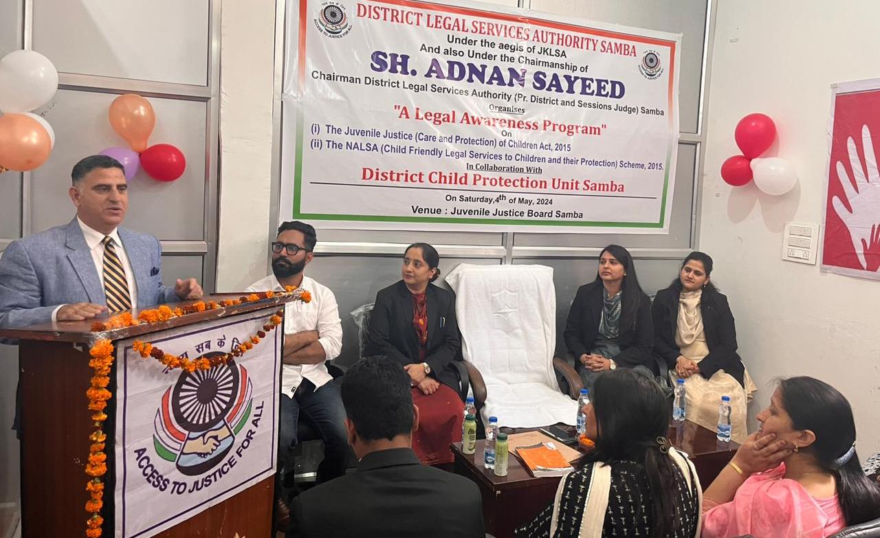 SAMBA, MAY 4: District Legal Services Authority (DLSA) Samba today organised a legal awareness program on “Juvenile Justice (Care and Protection) of Children Act, 2015” and “The NALSA (Child Friendly Legal Services to Children and their Protection) Scheme, 2015” for the children in conflict with law, Members of JJB Samba, CWC Samba and DCP Unit Samba here in the premises of JJ Board.