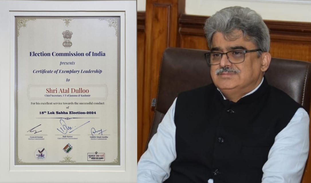JAMMU, MARCH 3: The Election Commission of India (ECI) had recognized the services of Chief Secretary, Atal Dulloo, for successful holding of elections for the 18th Lok Sabha in the UT of J&K.
