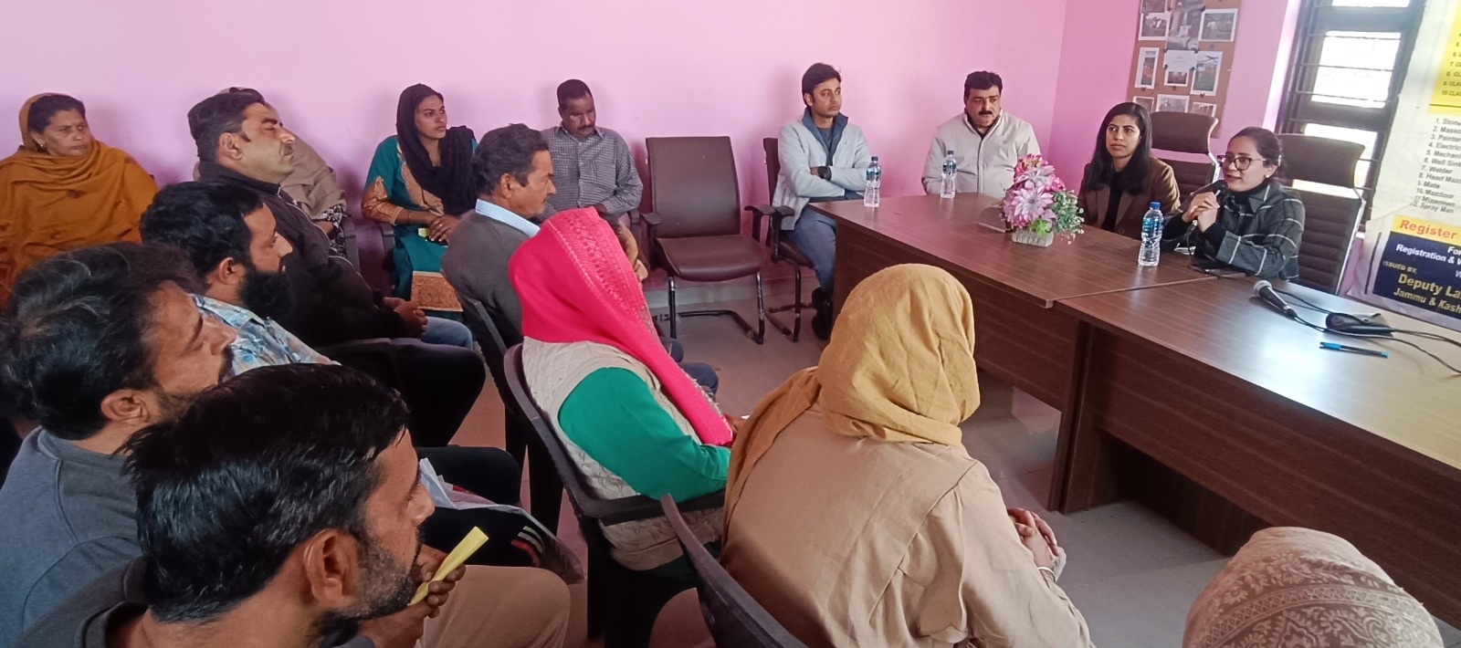 Key officials from the Handicrafts and Labour Departments, including Assistant Director Handicrafts Ekshu Sharma and Assistant Labour Commissioner Samba Himani Jerath, directly engaged with community members to provide comprehensive information about various government schemes and their potential benefits.