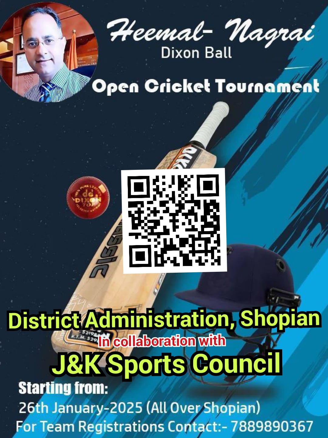 SHOPIAN, JANUARY 14: On the theme of ‘Say No to Drugs, Yes to Sports & Fitness,’ the District administration Shopian in collaboration with J&K Sports Council is going to organise District Level Competition in Cricket.