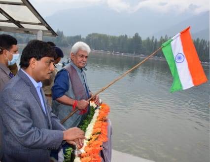 Srinagar: Jammu and Kashmir Lieutenant Governor Manoj Sinha on Friday flagged off the ‘Har Ghar Tiranga’ rally at the iconic Dal Lake in Srinagar.