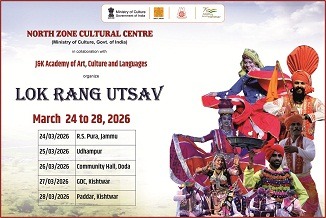 JAMMU, MARCH 23: The Jammu and Kashmir Academy of Art, Culture and Languages (JKAACL) in collaboration with the North Zone Cultural Centre (NZCC), Patiala, Punjab, is set to organize a five-day national-level music-cum-cultural programme across the Jammu Division starting from March 24, 2026.