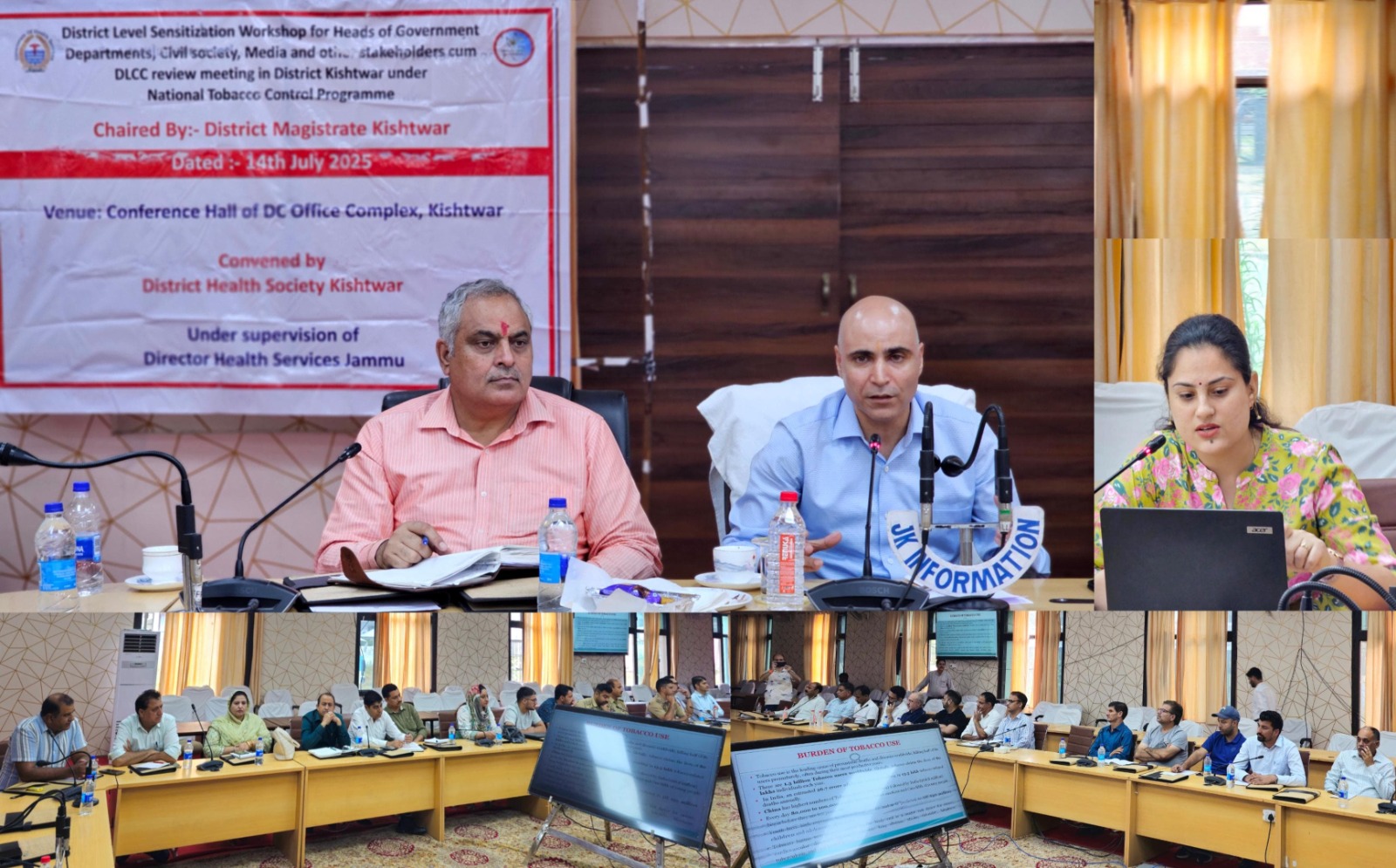 KISHTWAR, JULY 14: Deputy Commissioner (DC) Pankaj Kumar Sharma today presided over a Workshop cum District Level Coordination Committee (DLCC) Review Meeting to assess the implementation of National Tobacco Control Program (NTCP) in the district.