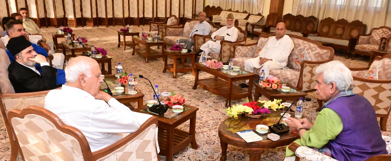 Srinagar: Lieutenant Governor Manoj Sinha on Wednesday hosted a ‘high tea’ party at the Raj Bhavan here for leaders of political parties and barring PDP president Mehbooba Mufti all invitees turned up for the meeting for which invitations were sent only this morning.