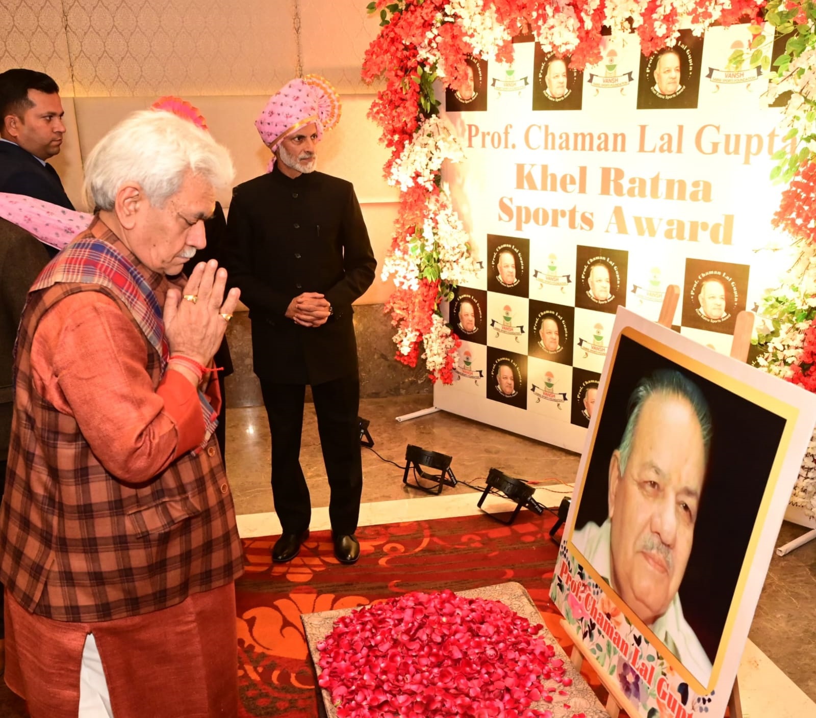 JAMMU, DECEMBER 17: Lieutenant Governor Shri Manoj Sinha addressed the Prof. Chaman Lal Gupta Khel Ratna Award 2024 ceremony today and felicitated the recipients of the prestigious sports award. The Lieutenant Governor also paid tributes to Prof. Chaman Lal Gupta.