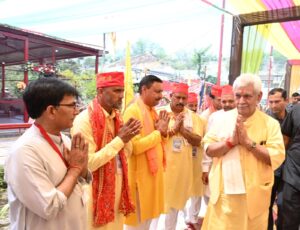 JAMMU, APRIL 23: Lieutenant Governor Shri Manoj Sinha today attended the foundation day of Sarv Shakti Chandi Mata Mandir at Dhammi, Nagrota.