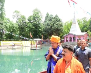 ANANTNAG, JULY 07: On the auspicious occasion of ‘Harbah Utsav’, the Lieutenant Governor Shri Manoj Sinha paid obeisance at Mata Sidh Lakshmi Temple at Teerathraj Lok Bhawan, Anantnag.