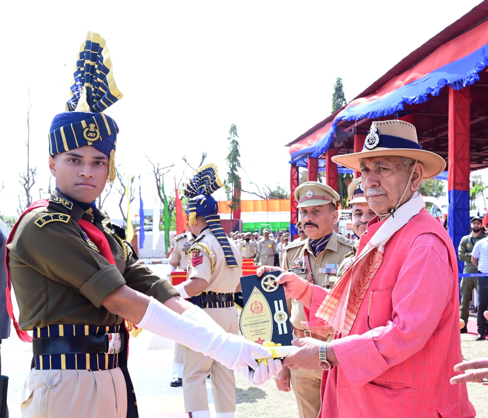 A total of 430 Trainee Constables passed out after their basic training and all trainees were administered the Oath. On the occasion, the Lieutenant Governor awarded trophies to the trainee constables who excelled during their training: Johnny Victor (All-Round Best), Vishal Bharat (Second All-Round Best), Yogesh Sharma (Third All-Round Best), Pankaj Raina (Indoor Best), Touseef Ahmed Lone (Outdoor Best), Tahir Rashid Dar (Best Marksman), Tasleem Kosar (Parade Commander) and Sushant Sharma (Parade 2nd -in-Command).