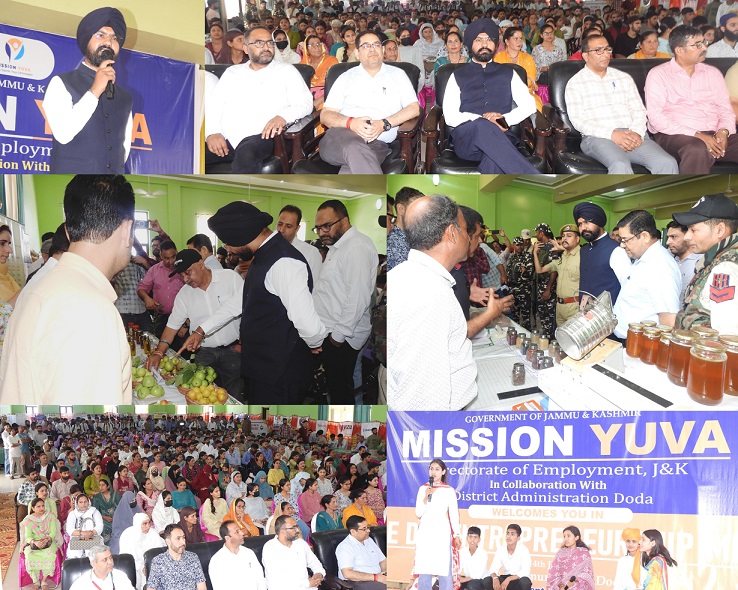 DODA, JUNE 14: The Directorate of Employment Jammu & Kashmir, in collaboration with the District Administration Doda on Saturday organized a Mission YUVA Entrepreneurship Mela here in the Community Hall.