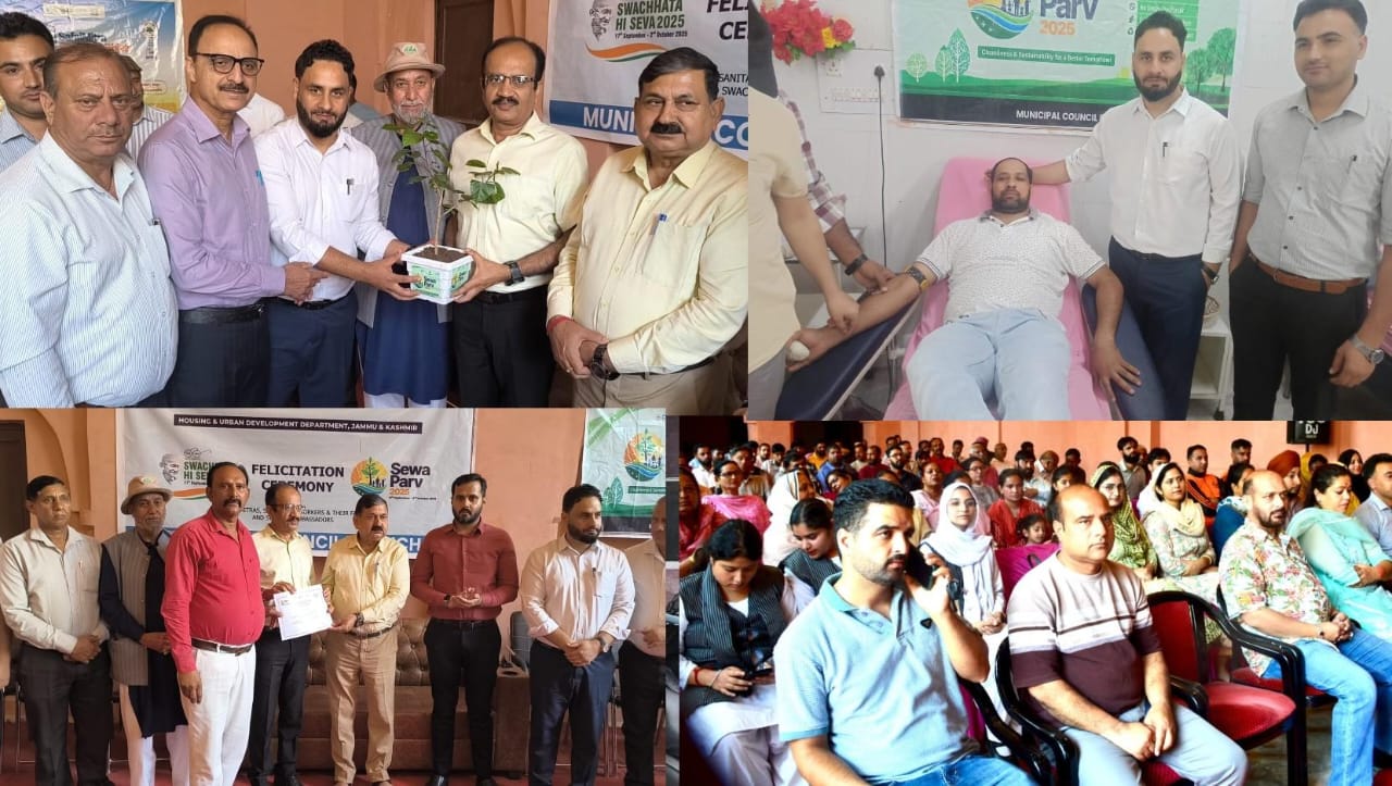 POONCH, OCTOBER 01: The Municipal Council Poonch under the ongoing Sewa Parv initiative organised a grand Felicitation Ceremony and a Blood Donation Camp to honor contributions towards cleanliness, community service and social responsibility.