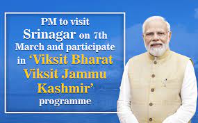Prime Minister Shri Narendra Modi will visit Srinagar, Jammu and Kashmir on 7th March, 2024. At around 12 noon, Prime Minister will reach Bakshi Stadium, Srinagar, where he will participate in the ‘Viksit Bharat Viksit Jammu Kashmir’ programme.