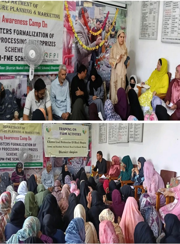 SHOPIAN, JUNE 19: Targeting the women entrepreneurship development in district Shopian, department of Horticulture Planning & Marketing Shopian today organized second awareness programme on Prime Ministers Formalization of Micro Food Processing Enterprises (PMFME) scheme at NRLM DMMU Batapora Shopian.