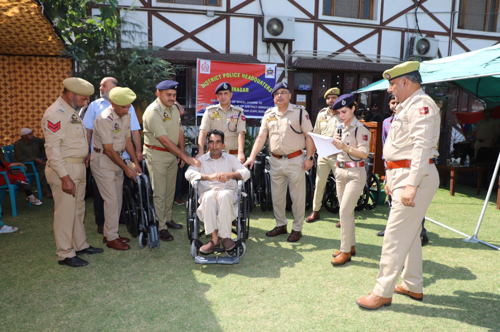 SSP Srinagar Rakesh Balwal-IPS distributed 29 wheelchairs among specially-abled persons hailing from different areas of Srinagar, most of whom belonged to vulnerable and economically weaker sections of the society.