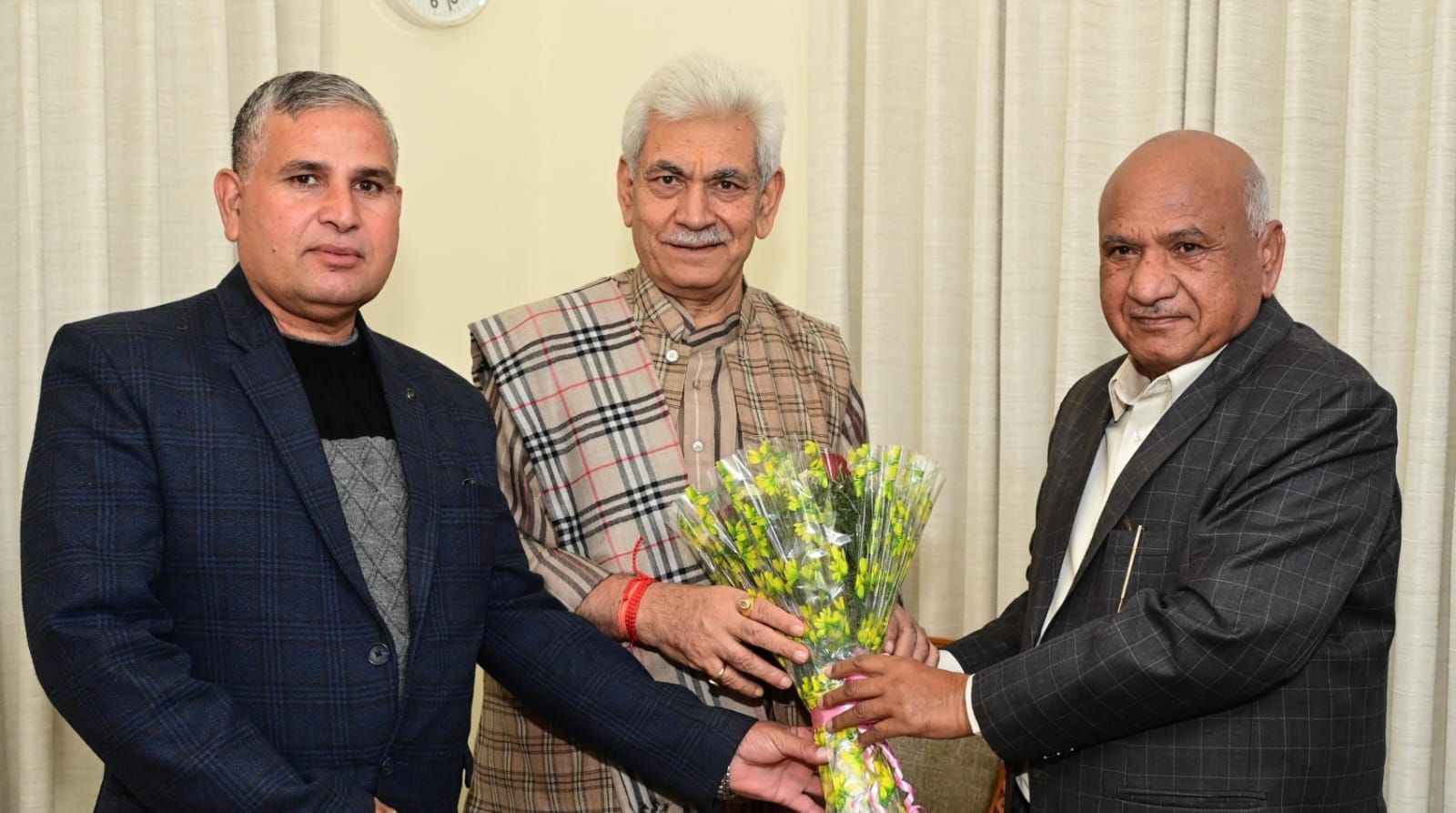 JAMMU, DECEMBER 08: Sh Bharat Bhushan, Chairman, District Development Council Jammu called on Lieutenant Governor Shri Manoj Sinha, today. He was accompanied by Sh Suraj Singh, Vice Chairman, DDC Jammu.