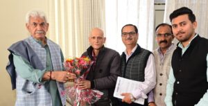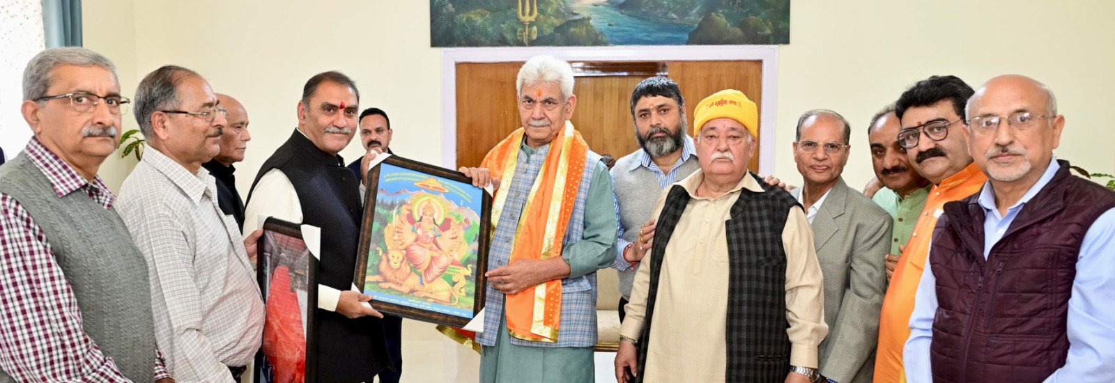 JAMMU, MARCH 17: A delegation of Shri Shri Jagat Amba Sharika Chakreshwar Sanastha Trust Hari Parbat, Devi Angan, Srinagar, led by its President Shri Ranjeet Gurkha called on Lieutenant Governor Shri Manoj Sinha, today.